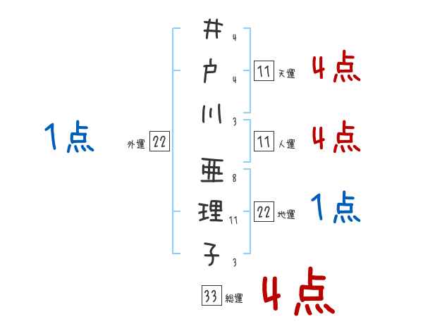 井戸川亜理子さんの画数の鑑定結果