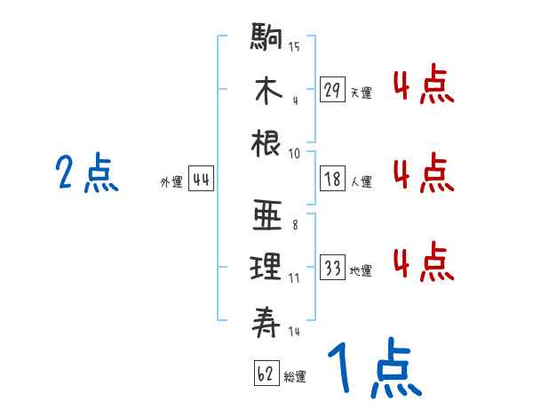 駒木根亜理寿さんの画数の鑑定結果