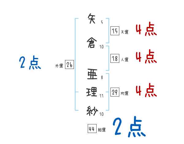 矢倉亜理紗さんの画数の鑑定結果