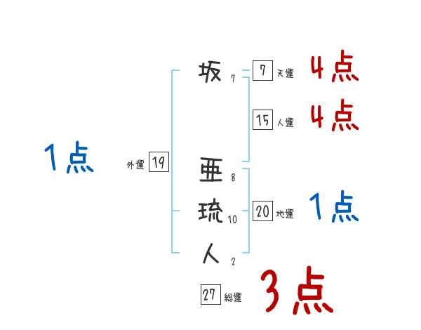 坂亜琉人さんの画数の鑑定結果