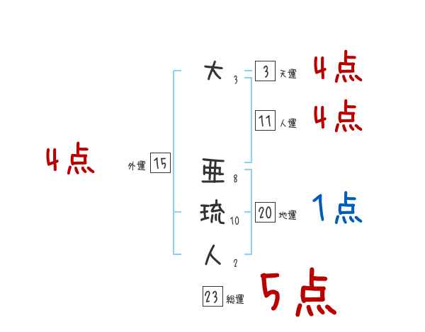 大亜琉人さんの画数の鑑定結果