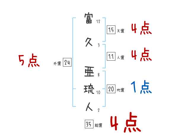 家系が持つ宿命的な運勢を表します。祖先から受け継いだ苗字ですので自分の力が及びません。家柄を象徴します。