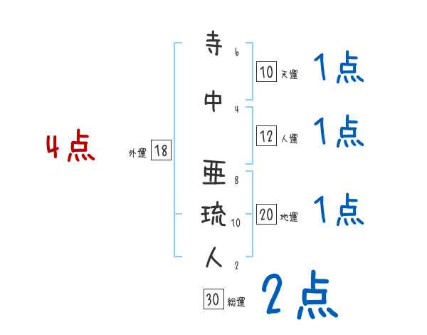 家系が持つ宿命的な運勢を表します。祖先から受け継いだ苗字ですので自分の力が及びません。家柄を象徴します。