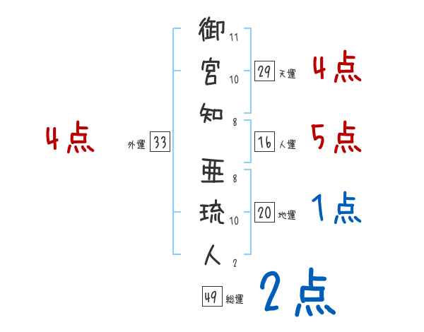 御宮知亜琉人さんの画数の鑑定結果