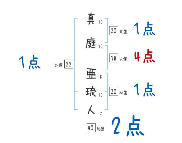 家系が持つ宿命的な運勢を表します。祖先から受け継いだ苗字ですので自分の力が及びません。家柄を象徴します。