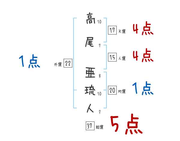 高尾亜琉人さんの画数の鑑定結果
