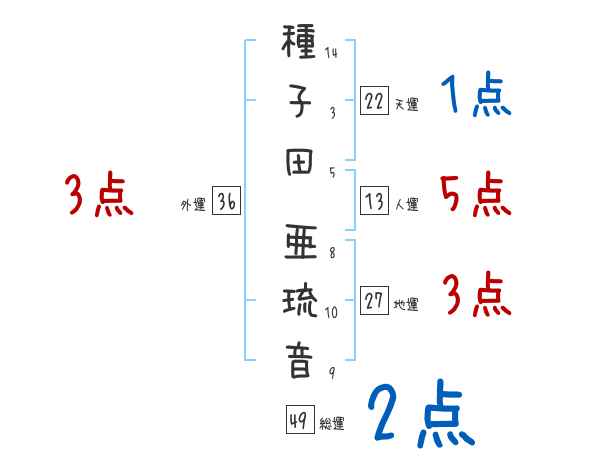 種子田亜琉音さんの画数の鑑定結果