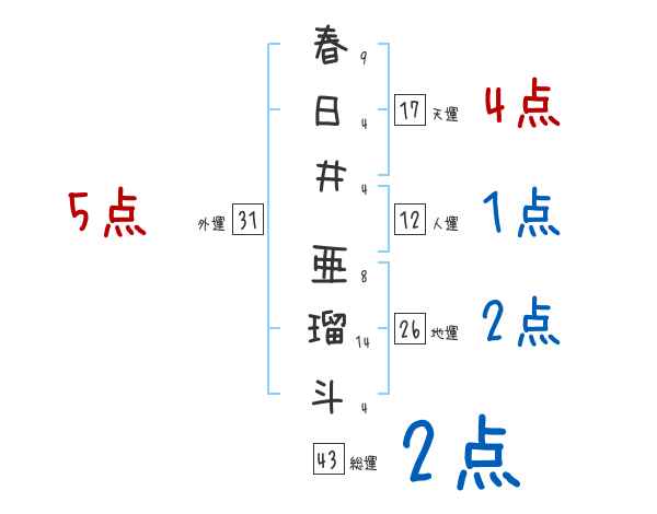 天運![]() | 春日井亜瑠斗さんの天運は17画の4つ星!積極的な行動力。地位を気づき財産を手に入れる。純粋な心と直感力。 家系が持つ宿命的な運勢を表します。祖先から受け継いだ苗字ですので自分の力が及びません。家柄を象徴します。 |