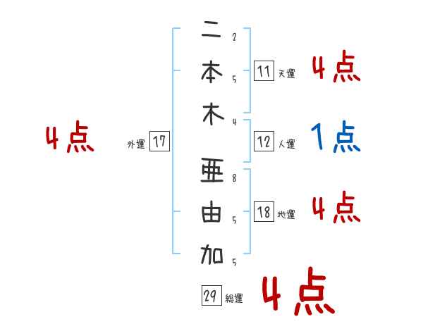 二本木亜由加さんの画数の鑑定結果