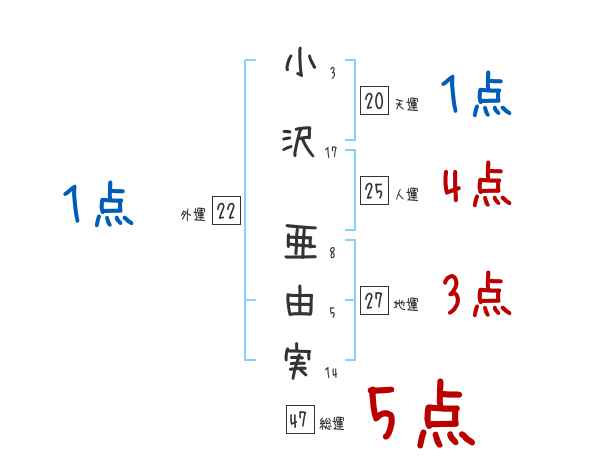 小沢亜由実さんの画数の鑑定結果
