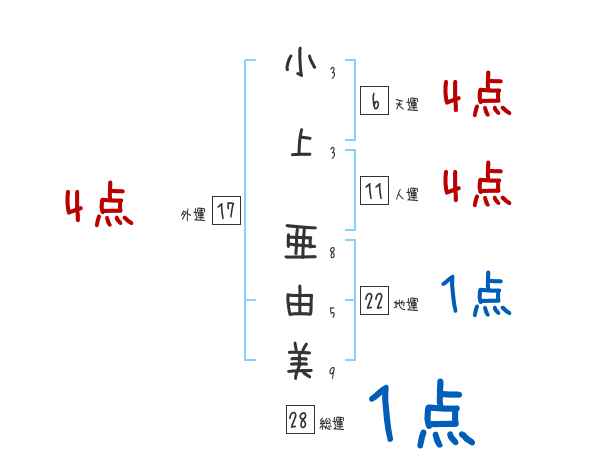 小上亜由美さんの画数の鑑定結果