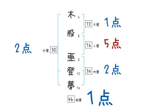人運![]() | 木股亜登夢さんの人運は16画の5つ星!人望が厚く大きく発展する。逆転成功が見える。 性格や才能などを表す2番目に重要な運勢です。人間関係や協調性、社会的な成功に影響します。主に20歳から50歳ぐらいまでの中年期の運勢を表します。 |