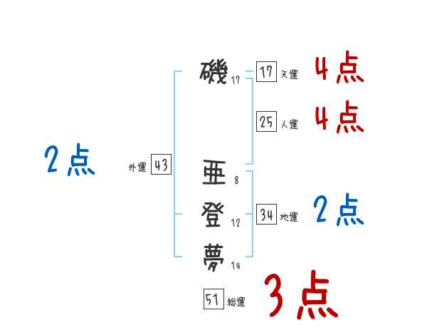 磯亜登夢さんの画数の鑑定結果
