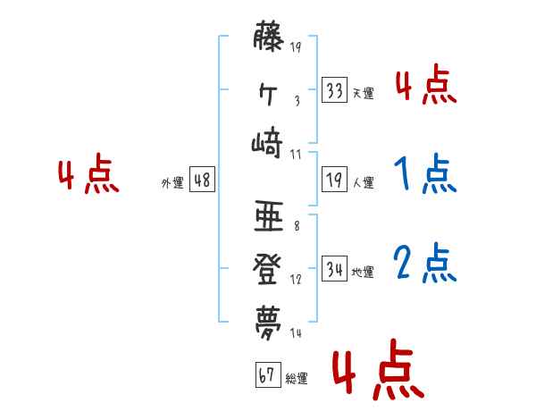 藤ヶ﨑亜登夢さんの画数の鑑定結果