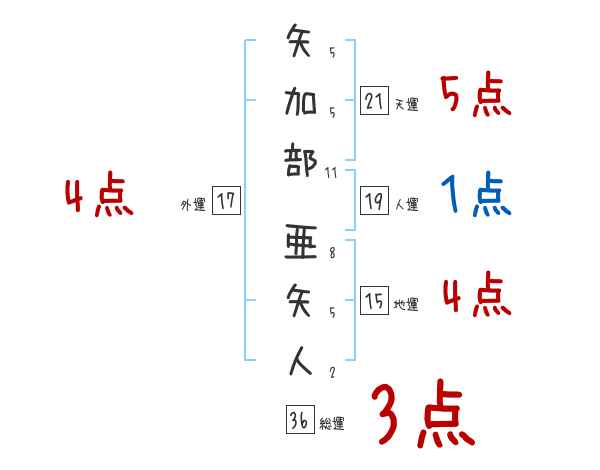 矢加部亜矢人さんの画数の鑑定結果