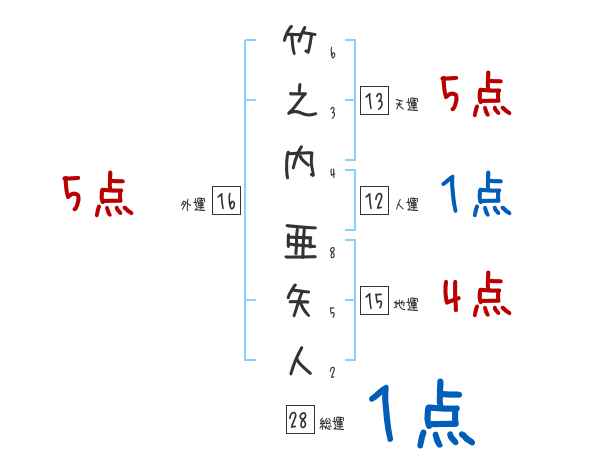 天運![]() | 竹之内亜矢人さんの天運は13画の5つ星!才能に恵まれ人気がある。名声を手に入れる。円満な人生。 家系が持つ宿命的な運勢を表します。祖先から受け継いだ苗字ですので自分の力が及びません。家柄を象徴します。 |