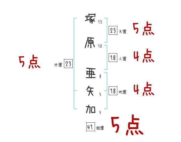 塚原亜矢加さんの画数の鑑定結果