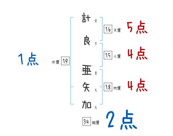 計良亜矢加さんの画数の鑑定結果
