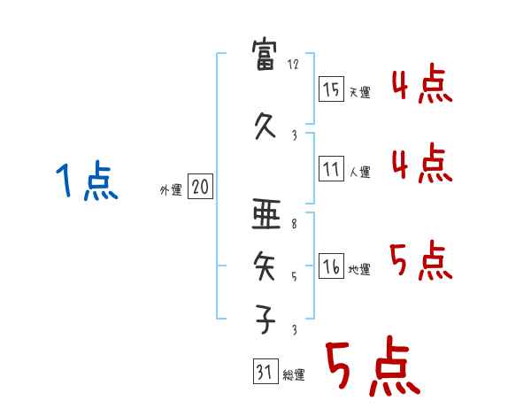 富久亜矢子さんの画数の鑑定結果