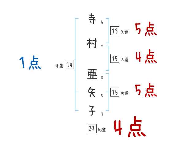 寺村亜矢子さんの画数の鑑定結果