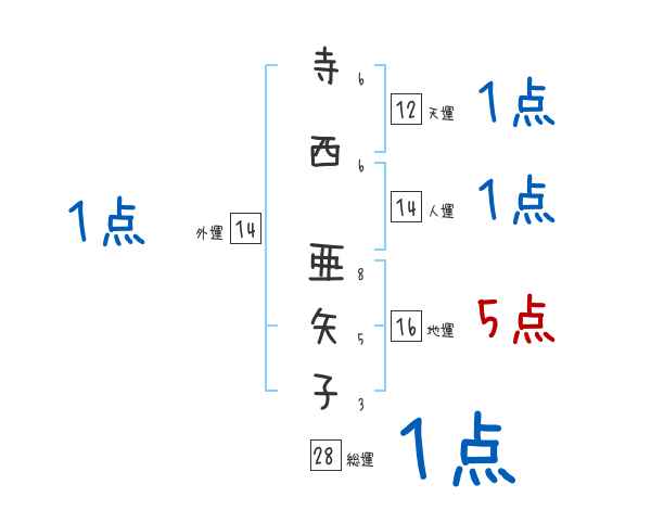 寺西亜矢子さんの画数の鑑定結果