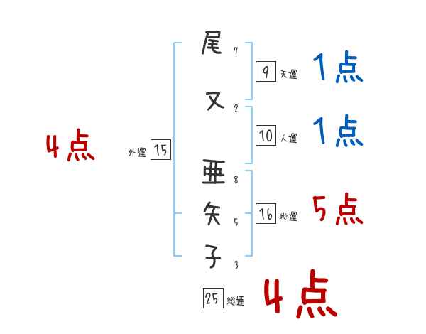 尾又亜矢子さんの画数の鑑定結果