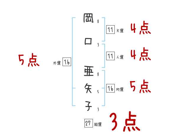 岡口亜矢子さんの画数の鑑定結果