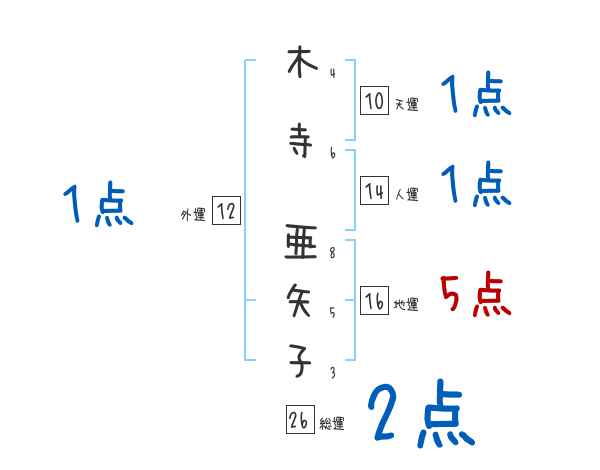 総運![]() | 木寺亜矢子さんの総運は26画の2つ星!波瀾万丈かも。信頼できる人を大事にしましょう。 あなたの人生を表す1番重要な運勢です。生涯を通じて影響する総合運となり、主に50歳以降の晩年期に影響を及ぼします。 |
