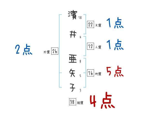 外運![]() | 濱井亜矢子さんの外運は26画の2つ星!波瀾万丈かも。信頼できる人を大事にしましょう。 生活面を象徴する運勢です。外部から受ける影響力を表し、結婚運、家庭運や職場、環境への順応性を表します。 |