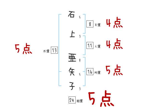 石上亜矢子さんの画数の鑑定結果