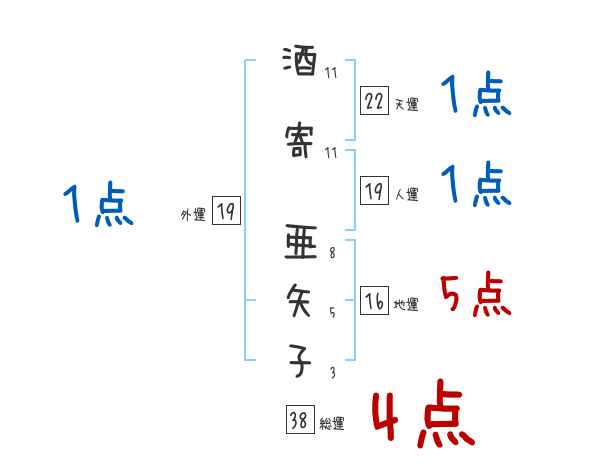 外運![]() | 酒寄亜矢子さんの外運は19画の1つ星!優れた才能を持ちますが、協調性が足りないことも。周りの人と協力する事を意識しましょう。 生活面を象徴する運勢です。外部から受ける影響力を表し、結婚運、家庭運や職場、環境への順応性を表します。 |