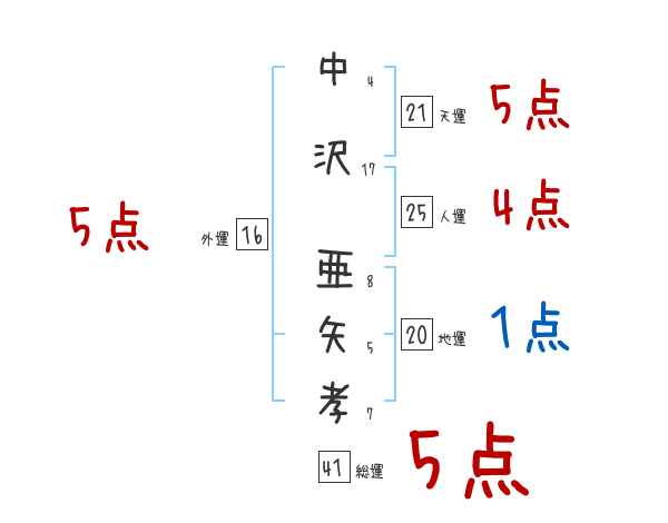 中沢亜矢孝さんの画数の鑑定結果