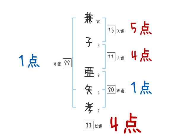 兼子亜矢孝さんの画数の鑑定結果