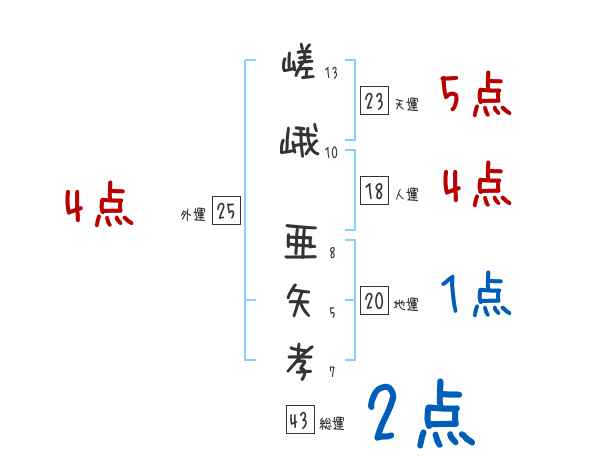 嵯峨亜矢孝さんの総運は43画の2つ星