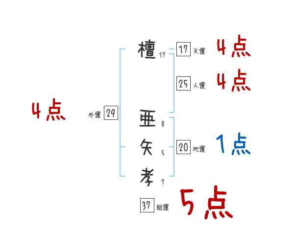 檀亜矢孝さんの画数の鑑定結果