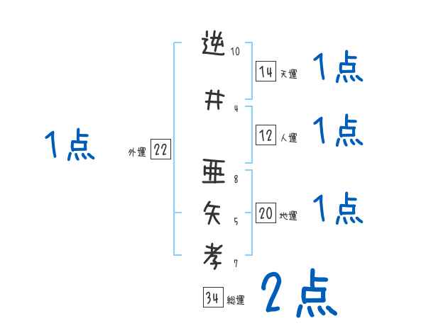 逆井亜矢孝さんの画数の鑑定結果