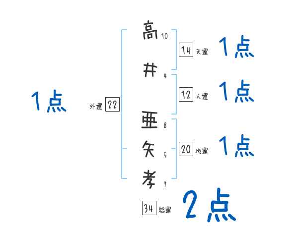 高井亜矢孝さんの画数の鑑定結果