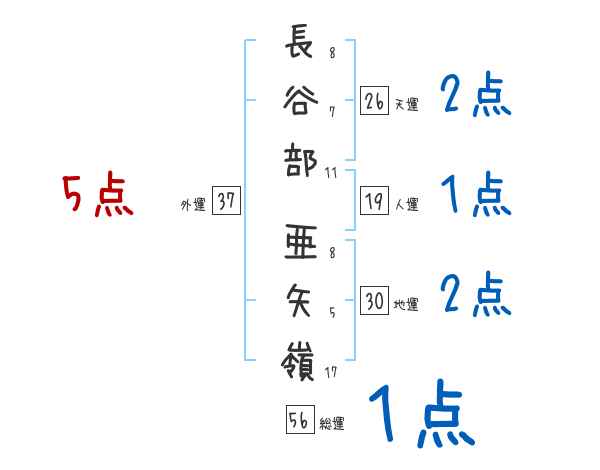 外運![]() | 長谷部亜矢嶺さんの外運は37画の5つ星!努力家で順応性に優れる。現実的な考え方ができ忠実に物事をこなす。 生活面を象徴する運勢です。外部から受ける影響力を表し、結婚運、家庭運や職場、環境への順応性を表します。 |