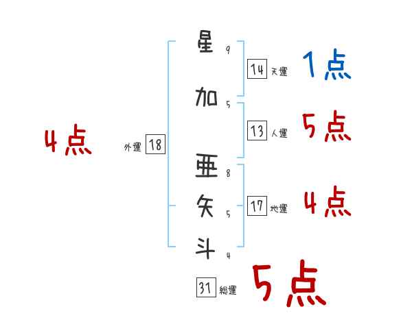 天運![]() | 星加亜矢斗さんの天運は14画の1つ星!人に対して優しいがストレスを溜め込みがち。人間関係のトラブルを避けるよう気をつけましょう。 家系が持つ宿命的な運勢を表します。祖先から受け継いだ苗字ですので自分の力が及びません。家柄を象徴します。 |