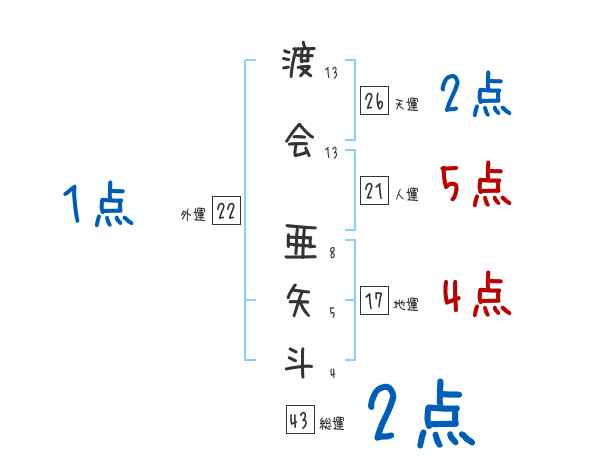 渡会亜矢斗さんの画数の鑑定結果