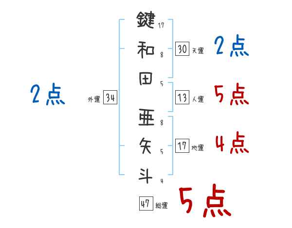 鍵和田亜矢斗さんの画数の鑑定結果