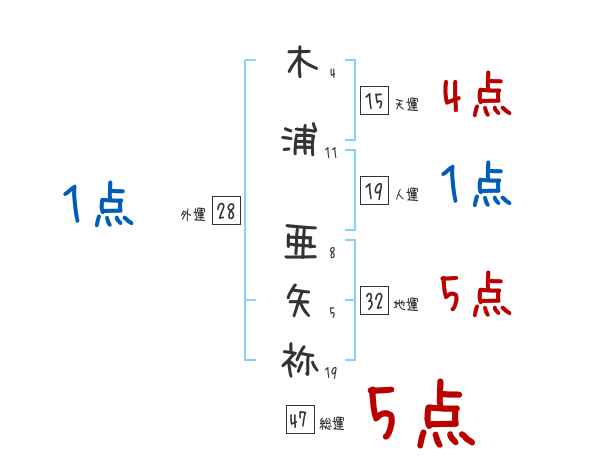 総運![]() | 木浦亜矢祢さんの総運は47画の5つ星!実力が開花し発展する円満な人生。財に恵まれる。 あなたの人生を表す1番重要な運勢です。生涯を通じて影響する総合運となり、主に50歳以降の晩年期に影響を及ぼします。 |