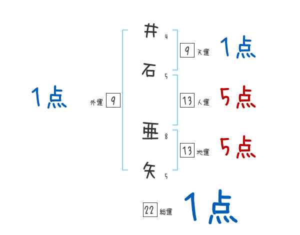 天運![]() | 井石亜矢さんの天運は9画の1つ星!消極的で才能を発揮することが苦手なことも。周りの意見に耳を傾けましょう。 家系が持つ宿命的な運勢を表します。祖先から受け継いだ苗字ですので自分の力が及びません。家柄を象徴します。 |