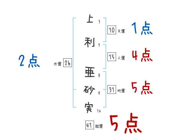 天運![]() | 上利亜砂実さんの天運は10画の1つ星!不安を感じやすい傾向。ストレスを抱えないように注意しましょう。 家系が持つ宿命的な運勢を表します。祖先から受け継いだ苗字ですので自分の力が及びません。家柄を象徴します。 |