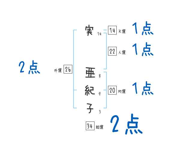 総運![]() | 実亜紀子さんの総運は34画の2つ星!独創性に優れるが、自尊心が強く災難に注意しましょう。 あなたの人生を表す1番重要な運勢です。生涯を通じて影響する総合運となり、主に50歳以降の晩年期に影響を及ぼします。 |
