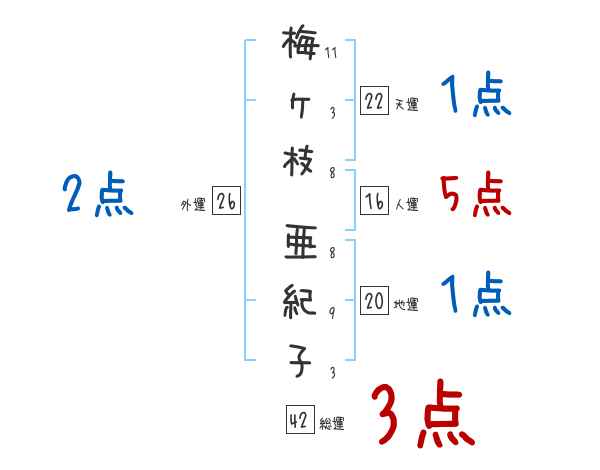 梅ヶ枝亜紀子さんの画数の鑑定結果