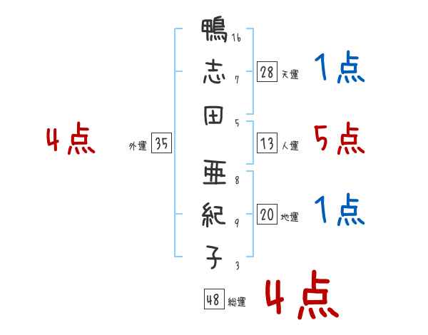 鴨志田亜紀子さんの画数の鑑定結果