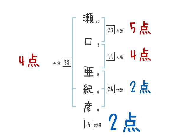 外運![]() | 瀬口亜紀彦さんの外運は38画の4つ星!温厚な性格で技術的な才能を発揮する。職人的な仕事に向いている。 生活面を象徴する運勢です。外部から受ける影響力を表し、結婚運、家庭運や職場、環境への順応性を表します。 |