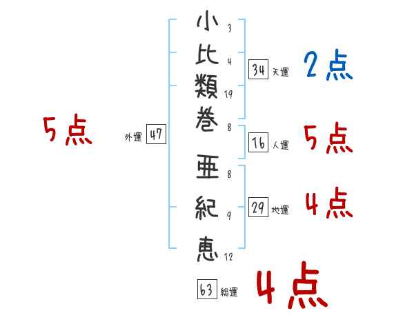 小比類巻亜紀恵さんの画数の鑑定結果