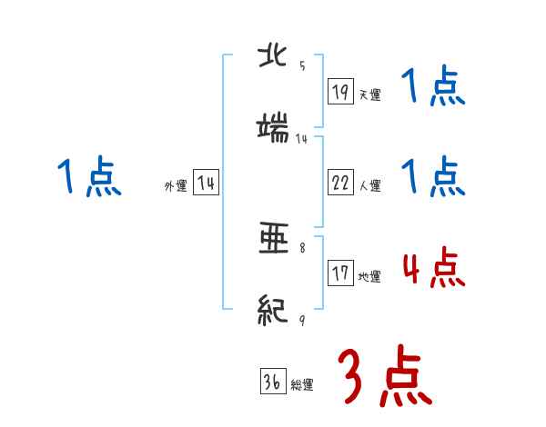 北端亜紀さんの画数の鑑定結果